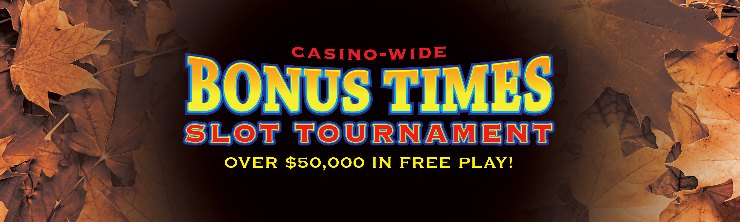 Get ready for casino-wide excitement during our $50,000 Bonus Times Slot Tournament! No registration required, just play your favorite slot machines and you’re in the game. One lucky winner will take home a $10,000 Free Play Grand Prize!