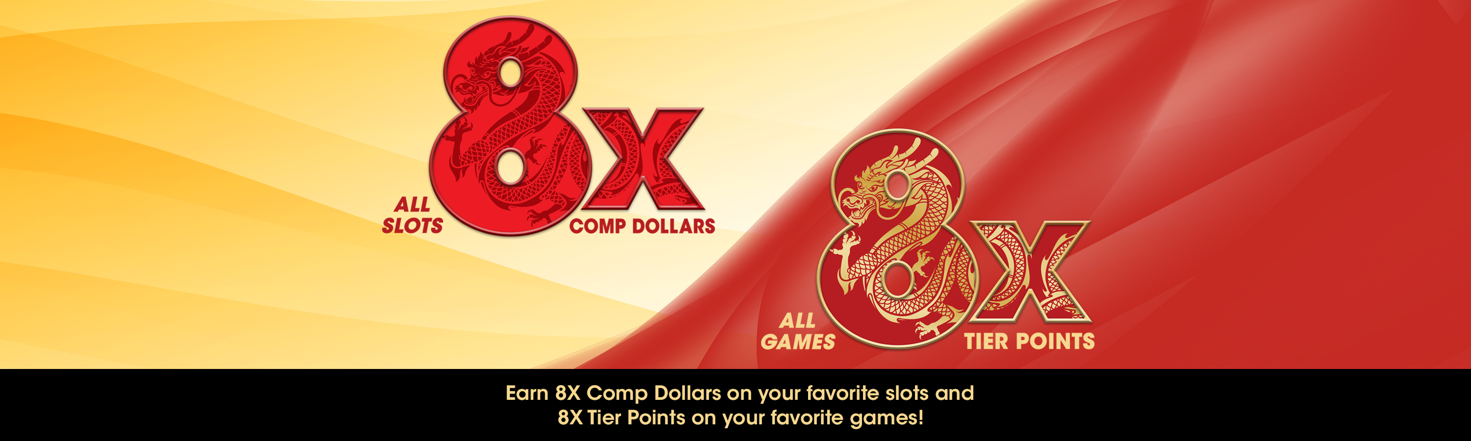 Earn 8X Comp Dollars on your favorite slots and earn 8X Tier Points on your favorite games, December 5 - 6, 2025!