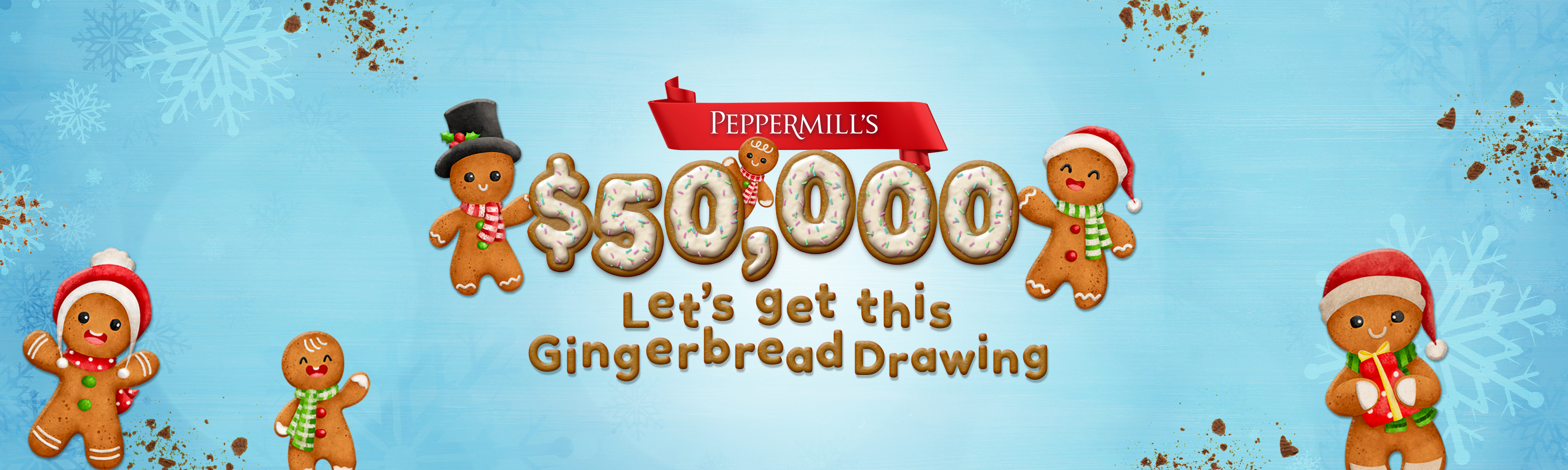 Join us for Peppermill's $50,000 Let's Get This Gingerbread Drawing, December 19 - 21, 2025. Over 100 winners will walk away with a share of $50,000! You can also earn 6X Comp Dollars just by playing your favorite slots on December 19 and 20!